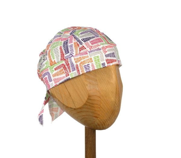 chusta - zwarta i przylegająca konstrukcja; wykończenie brzegów szwem wzmacniającym; odpowiednia dla pacjentów po chemioterapii i urazach głowy; również dla wszystkich dzieci i dorosłych (sport - rower, rolki... ochrona przed słońcem - plaża, piesze wędrówki...): żywe kolory - dobrej zabawy!!!