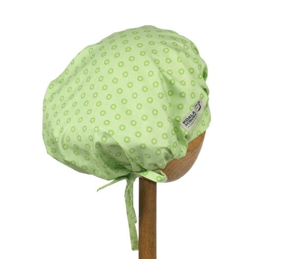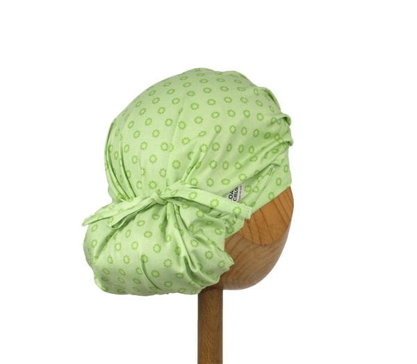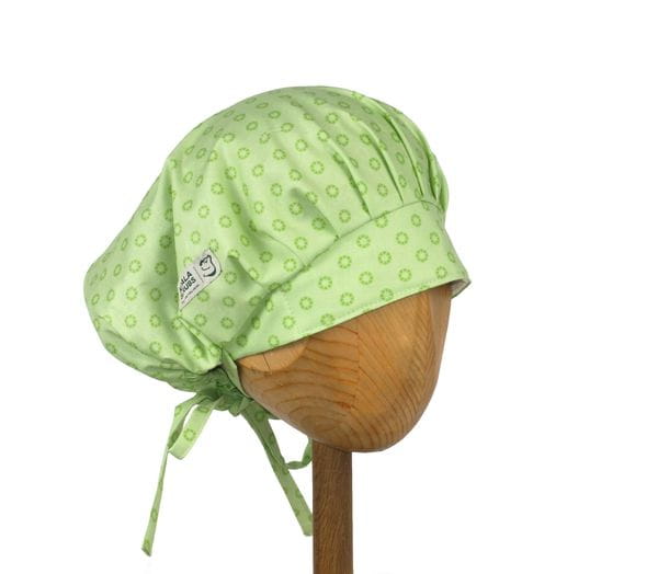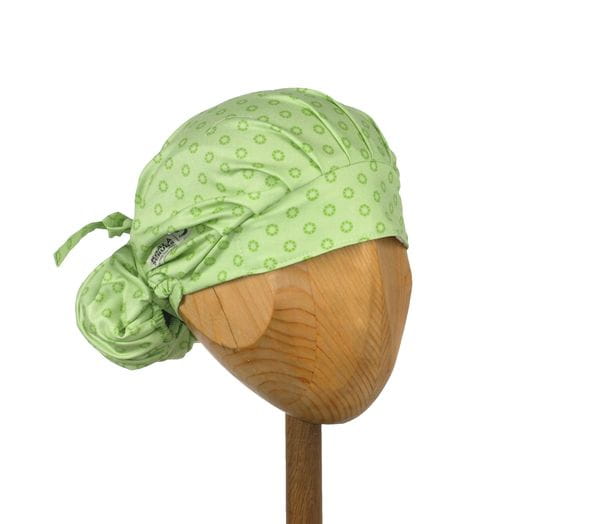 czepek KOALA - powstał by sprostać podstawowemu wymogowi BHP - całkowita ochrona włosów - umożliwia ubranie w formie luźnej oraz upiętej (patrz zdjęcia) - tył wykończony gumką - posiada dodatkowe, boczne  tasiemki umożliwiające zawiązanie w wybraną formę.
