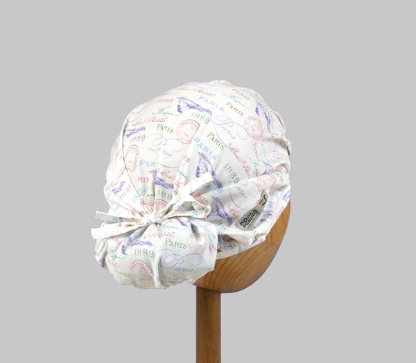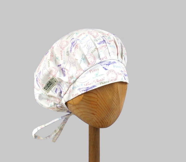 czepek KOALA - powstał by sprostać podstawowemu wymogowi BHP - całkowita ochrona włosów - umożliwia ubranie w formie luźnej oraz upiętej (patrz zdjęcia) - tył wykończony gumką - posiada dodatkowe, boczne  tasiemki umożliwiające zawiązanie w wybraną formę.