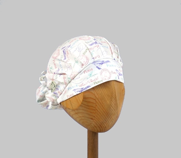 UWAGA !!!  ten czepek posiada wszywkę z tkaniny frotte na czole.