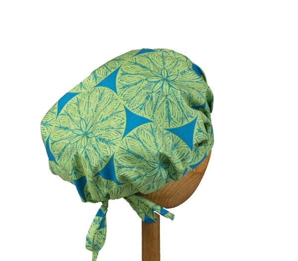 czepek KOALA - powstał by sprostać podstawowemu wymogowi BHP - całkowita ochrona włosów - umożliwia ubranie w formie luźnej oraz upiętej (patrz zdjęcia) - tył wykończony gumką - posiada dodatkowe, boczne  tasiemki umożliwiające zawiązanie w wybraną formę.