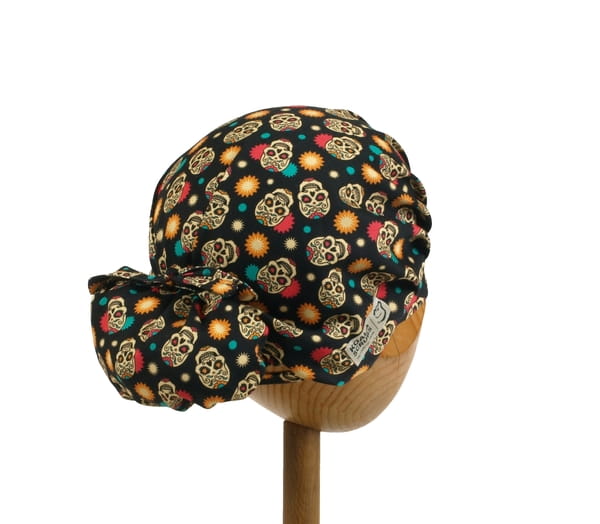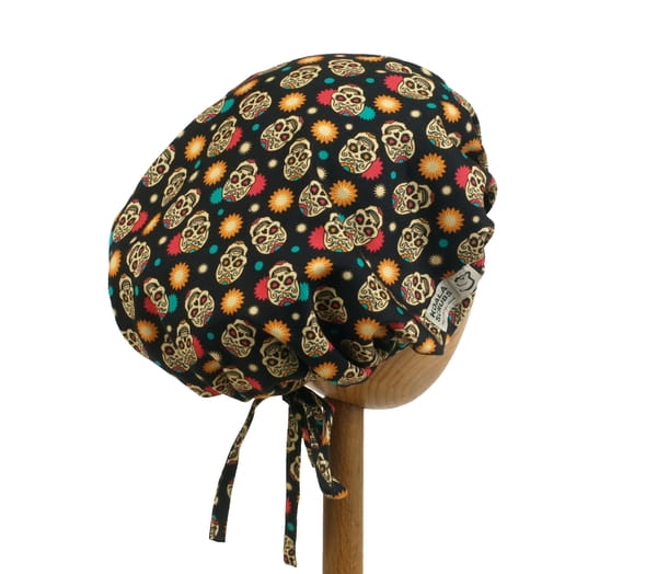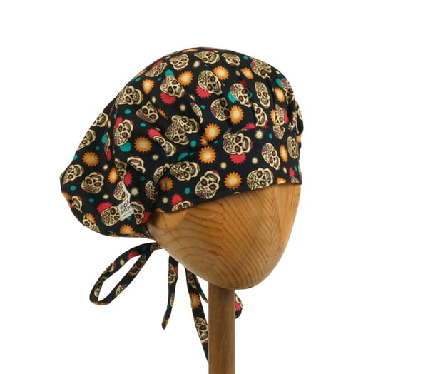 czepek KOALA - powstał by sprostać podstawowemu wymogowi BHP - całkowita ochrona włosów - umożliwia ubranie w formie luźnej oraz upiętej (patrz zdjęcia) - tył wykończony gumką - posiada dodatkowe, boczne  tasiemki umożliwiające zawiązanie w wybraną formę.