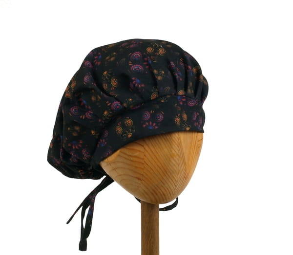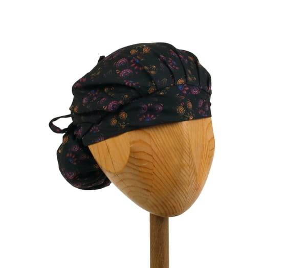 czepek KOALA - powstał by sprostać podstawowemu wymogowi BHP - całkowita ochrona włosów - umożliwia ubranie w formie luźnej oraz upiętej (patrz zdjęcia) - tył wykończony gumką - posiada dodatkowe, boczne  tasiemki umożliwiające zawiązanie w wybraną formę.