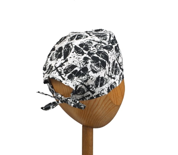 czepek "light" - lekka konstrukcja; otwarte wykończenie tyłu; brzeg dolny to podwinięta tkanina na wysokość ok.2,5cm; troczki tylne z tej samej tkaniny.