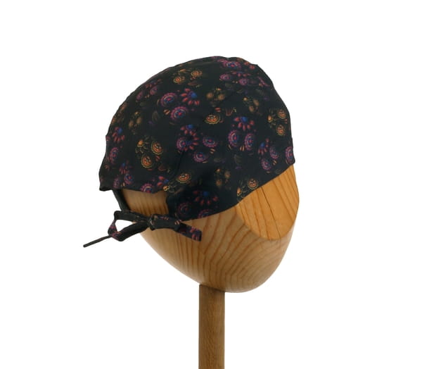 czepek "light" - lekka konstrukcja; otwarte wykończenie tyłu; brzeg dolny to podwinięta tkanina na wysokość ok.2,5cm; troczki tylne z tej samej tkaniny.