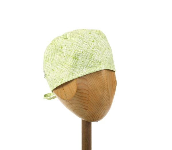 czepek uniwersalny - regularna i wygodna konstrukcja; wykończenie tyłu umożliwia zarówno wypuszczenie dłuższych włosów na zewnątrz jak i ich upięcie pod czepkiem; brzeg dolny wykończony lamówką z tej samej tkaniny.