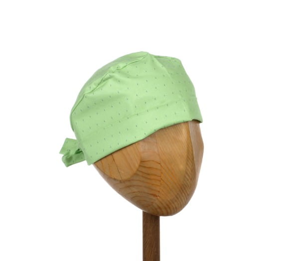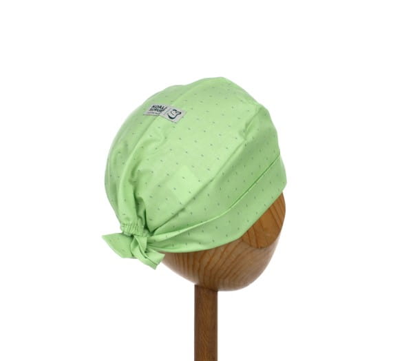 czepek wywijany - konstrukcja dająca wiele możliwości; czoło, boki oraz troczki to jedna podwójnie złożona tkanina - umożliwia noszenie zarówno w formie niewyniętej jak również pełną regulację głębokości poprzez wywinięcie brzegu dolnego: tył otwarty, wykończony gumką.